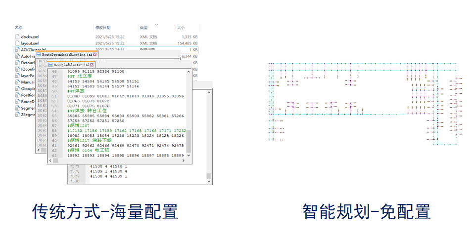 智能路径规划模块:基于多智能体路径规划算法,智能路径规划拥有免配置、充分利用空间、智能规划载具换向、交通均衡、智能绕障等优点,可使项目运行效率提升10%以上。